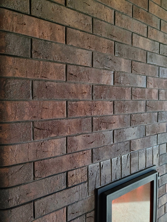 • Стильный дизайн: Тёмный кирпич с переливами гармонирует с современным интерьером, добавляя элегантности.