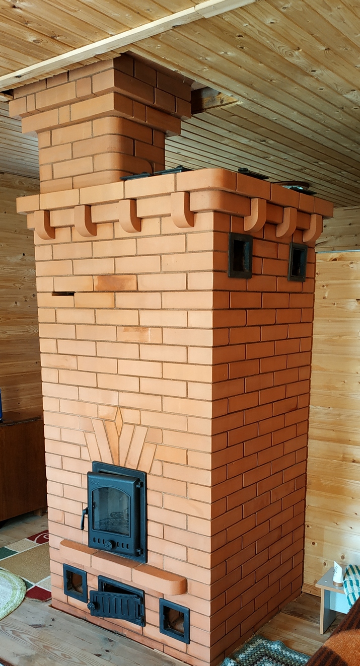 Печь футерована шамотным кирпичем ША-8, т.е. печь имеет защиту от перетопа, тепло аккумулирующий массив в 500 кг.
